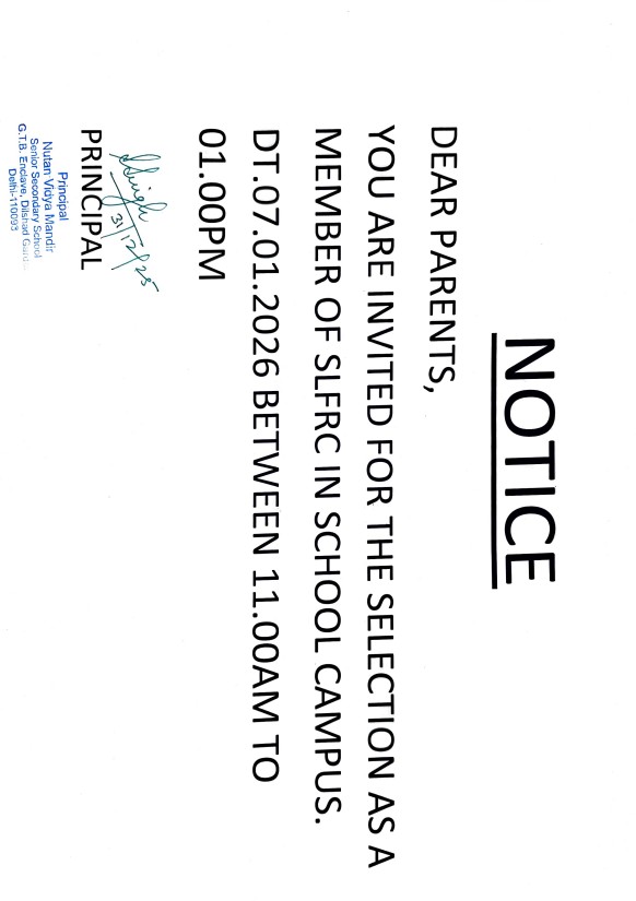 Nutan Vidya Mandir is a co-educational Senior Secondary Public School recognized by Delhi Administration and affiliated to C.B.S.E., Delhi and imparts education on 10+2 pattern of schooling.